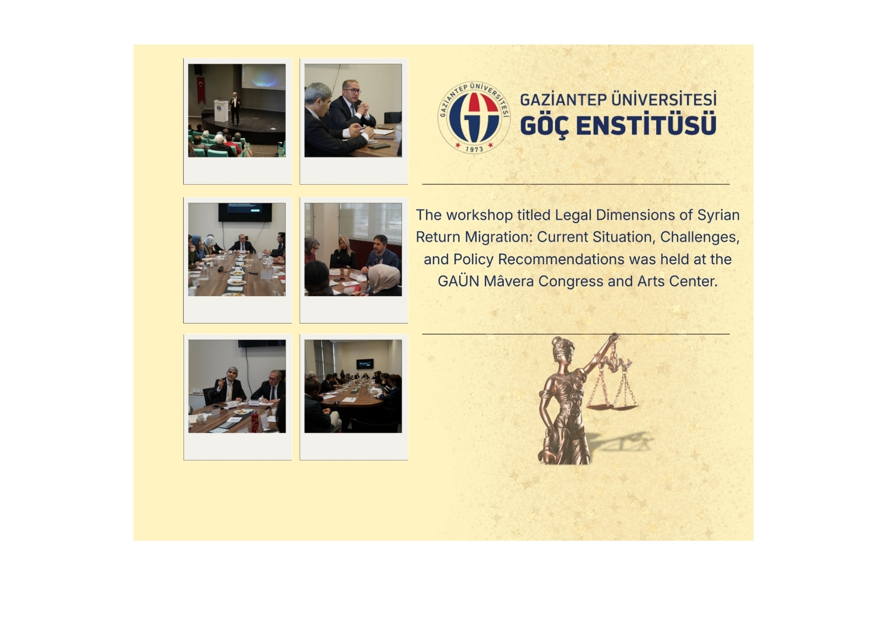 The workshop titled Legal Dimensions of Syrian Return Migration: Current Situation, Challenges, and Policy Recommendations was held at the GAÜN Mâvera Congress and Arts Center.